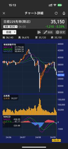 先週もなかなかの相場でしたね。。。9月4日は大きく下げました。 日経平均株価、終値は1638円安の3万7047円…一時1800円超下落 : 読売新聞 そして6日金曜夜には米雇用統計の発表!それを材料に日経平均先物は1210円の暴落を起こしました。月曜日…