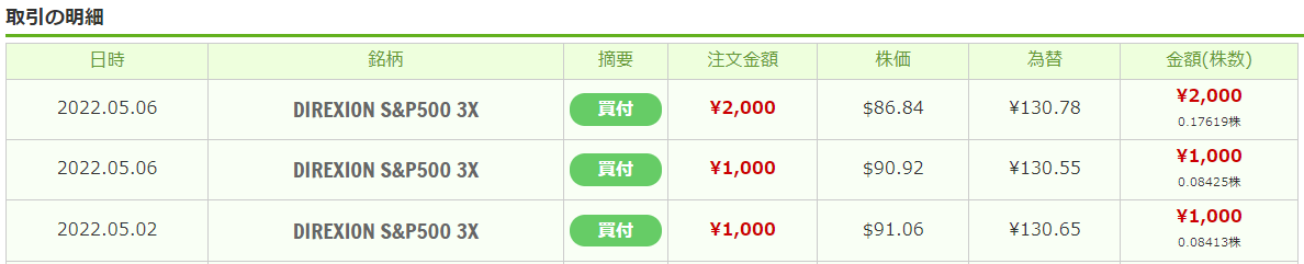引き続き、下げの度にSPXLをチマチマ買ってました。