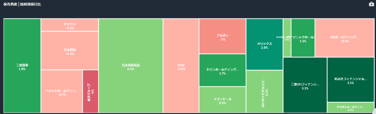 日本株チームをけん引してくれていて、先週よりプラスです。