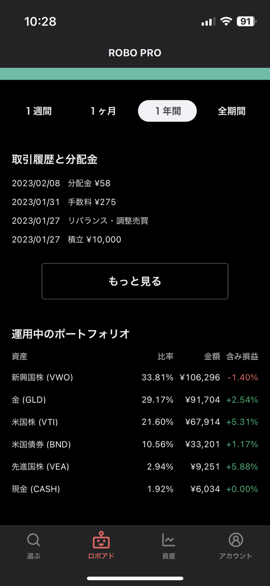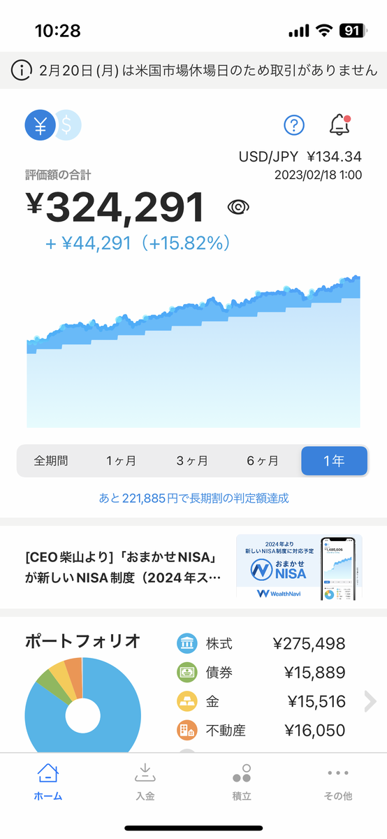 2020年10月から続けてます!現在の元本は28万円。WelthNaviはリスク許容度5です。