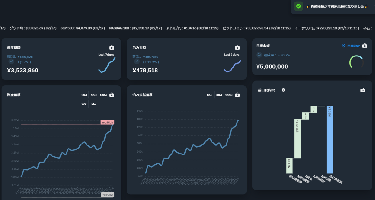 なんと先週末より+21万円。ちょっと出来すぎ。。。