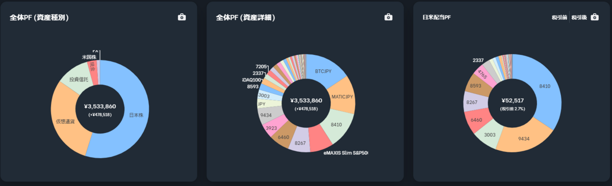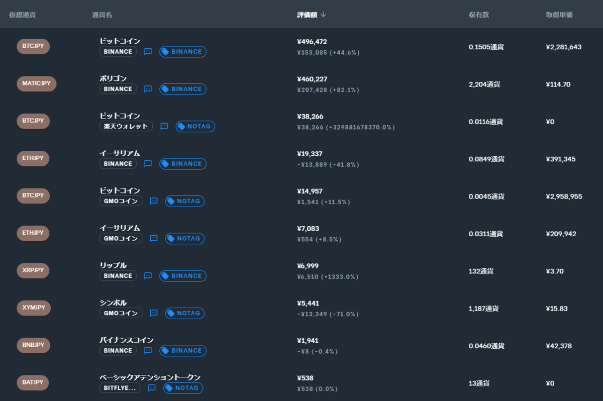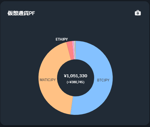 結果、ビットコイン(BTC)とポリゴン(MATIC)が全体PFの1位2位を占めるというね(めっちゃリスク取ってる感…)