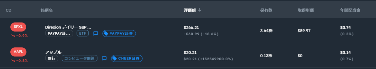 米株は元気ないです。先週より2ドル減りました。