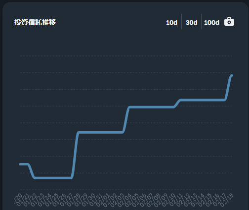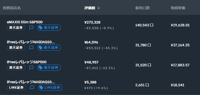 先週から7千円増。LINE証券でちまちまとレバナスを買ってます(多分200円分買った)。eMaxis slim S&P500の評価額が伸びてました。ドル円がドル高に振れた恩恵と思われます。