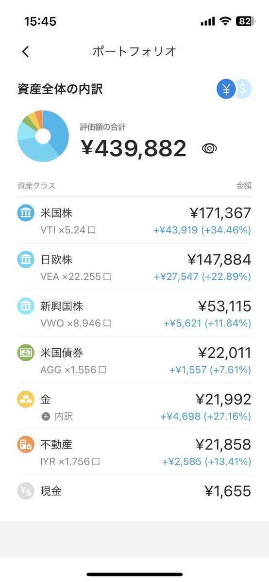 2020年10月から続けてます!現在の元本は35万円。WelthNaviはリスク許容度5です。