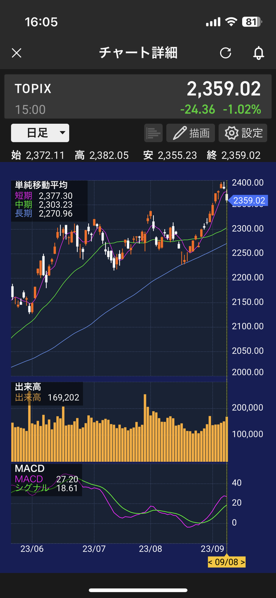 なんとかTOPIXを引き離すことが出来ました。