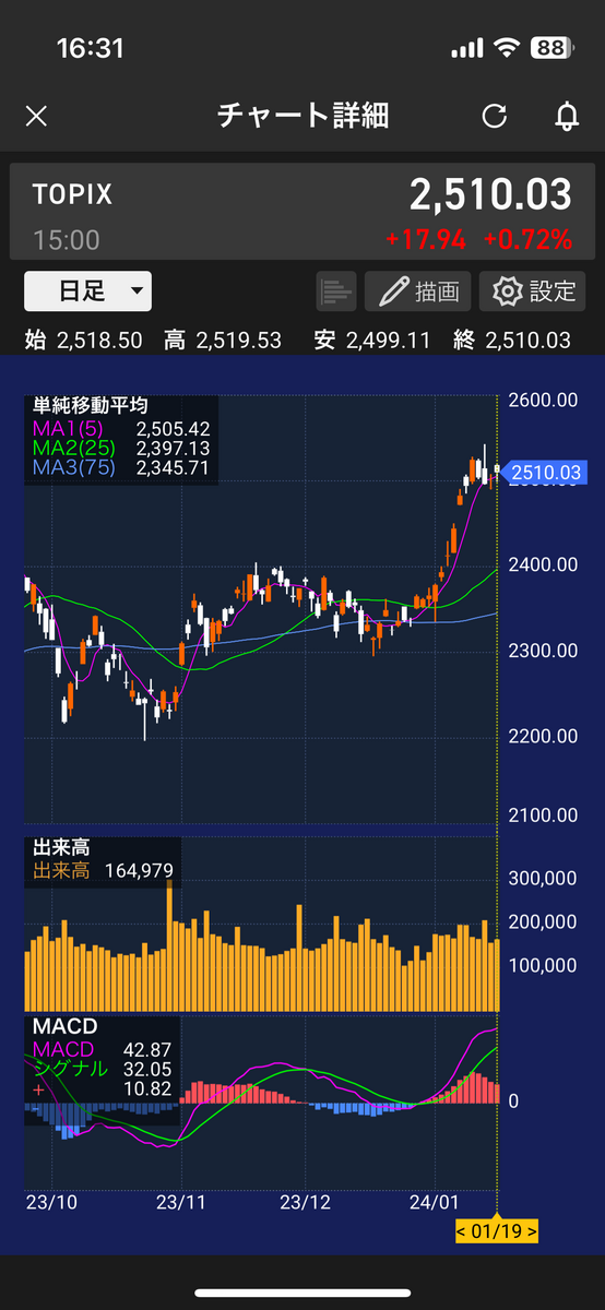 今週にはいてからトントーン!と上がっていっちゃいました。グロースは全然ダメですけど・・・。