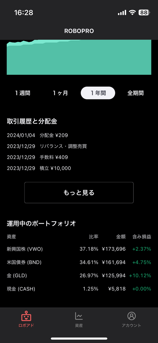 ロボプロは先週より+8,100円、WelthNaviは+8,600円でした。米株の伸びがすごいですね。あとは円安効果。