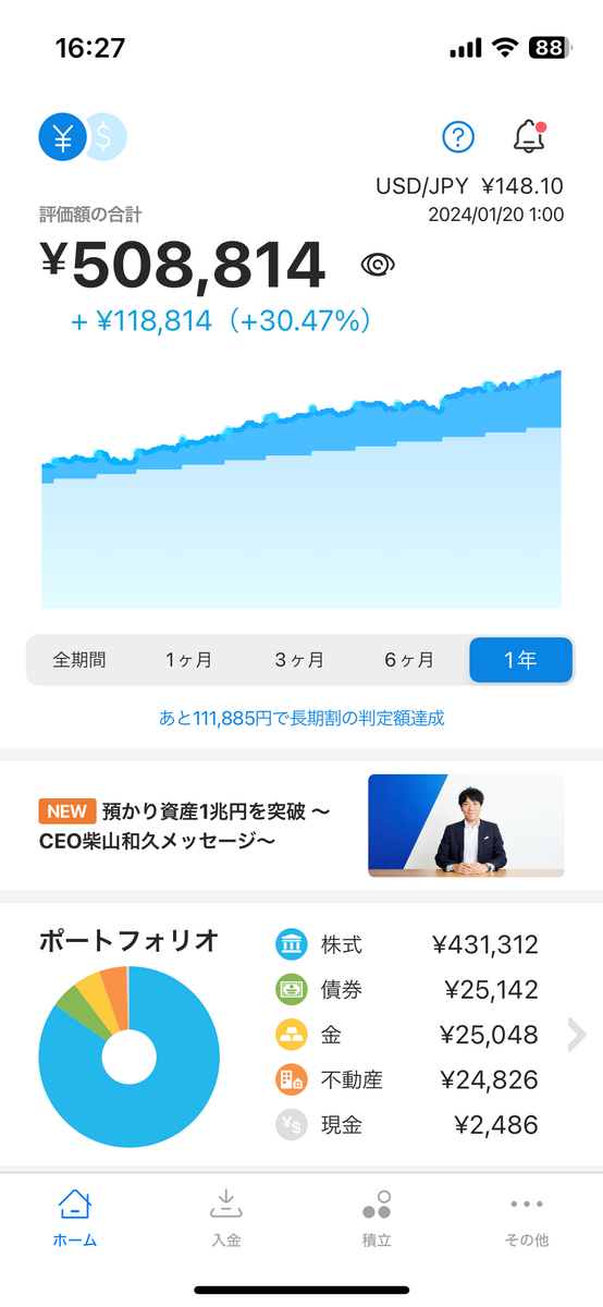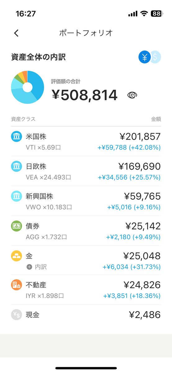 2020年10月から続けてます!現在の元本は39万円。WelthNaviはリスク許容度5です。