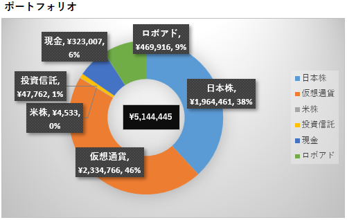 先週から▲18,000円です。仮想通貨がジワジワと落ちていてこの影響を受けています。