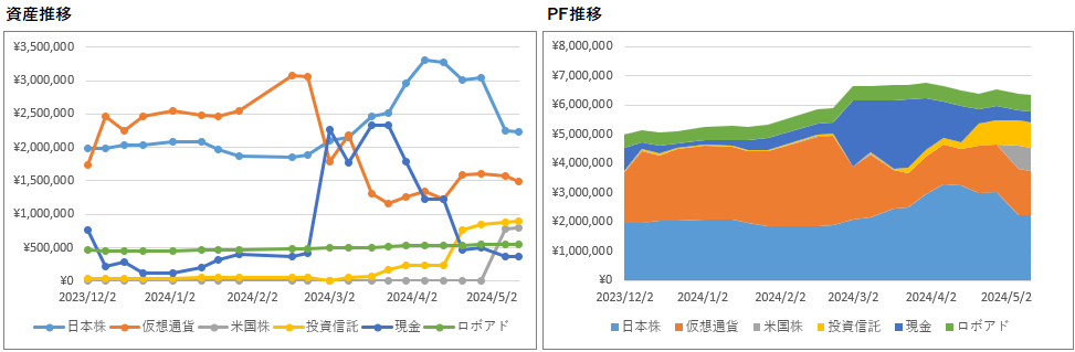 先週から+36万円増でした。投資信託の伸びが素晴らしいです。