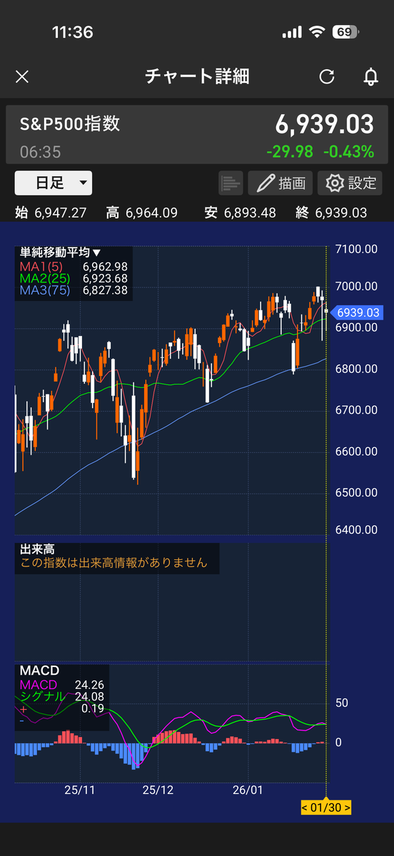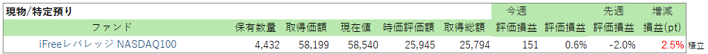 先週から+543円です。ハイテクは利下げ後退でしばらく重たそうです。