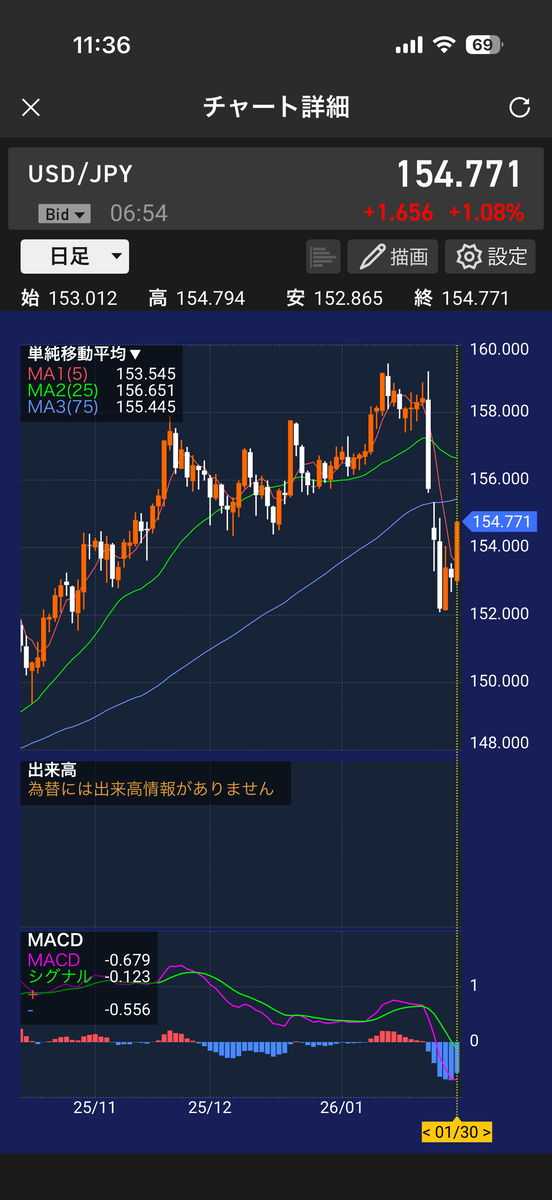 日本株は半導体とキオクシアが元気でしたね。米株は次期FRB議長にウォーシュ氏指名と伝わり利下げ期待後退で売られてしまいました。ドル円は日米協調介入しないんじゃない?の思惑でリバってきました。