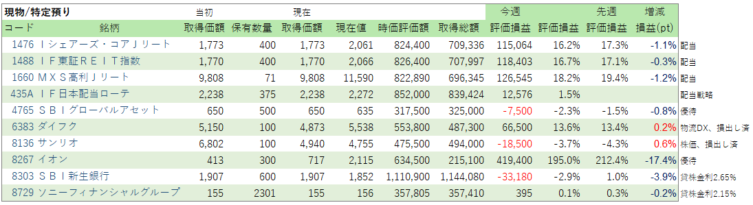 先週から▲25万円です。ヒューリックは好決算で株価があがりました!が、他はあれこれ下げています。半導体やメモリ銘柄を持っていないので、今の相場には乗れていないです。