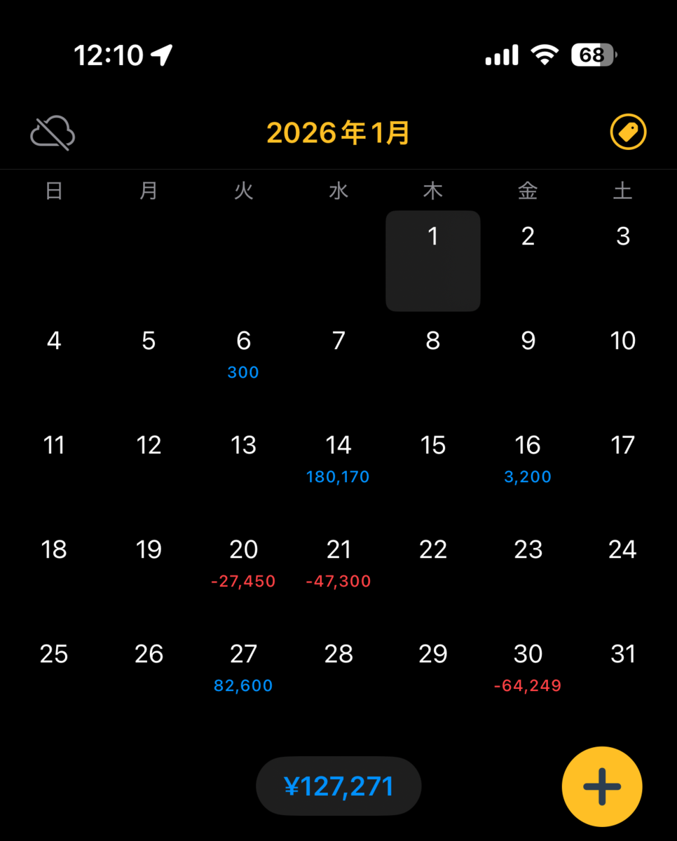 先週から▲35万円です。iPhone17を買ったので現金が13万円減りました。iPhoneは置き配されてびっくりしましたが。。。